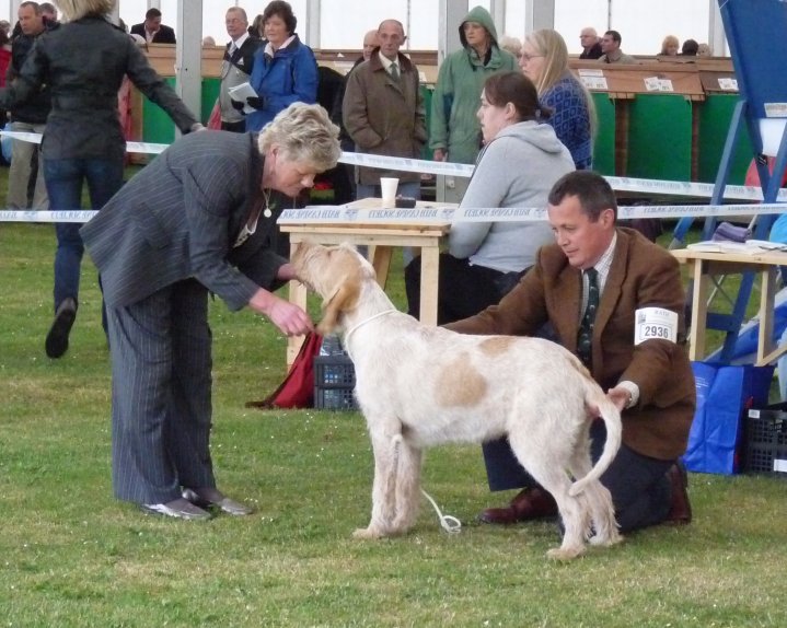 More recently David has undertaken the task of showing our youngest Spinone Sid! The pair also have a special understanding as Sid can often be seen “smiling” and “chatting” to David. They have so far been placed in the top half of Sid’s puppy classes with Firsts, Seconds and a third. Sid and David have also been in the Puppy Stakes classes achieving Seconds and Thirds also!